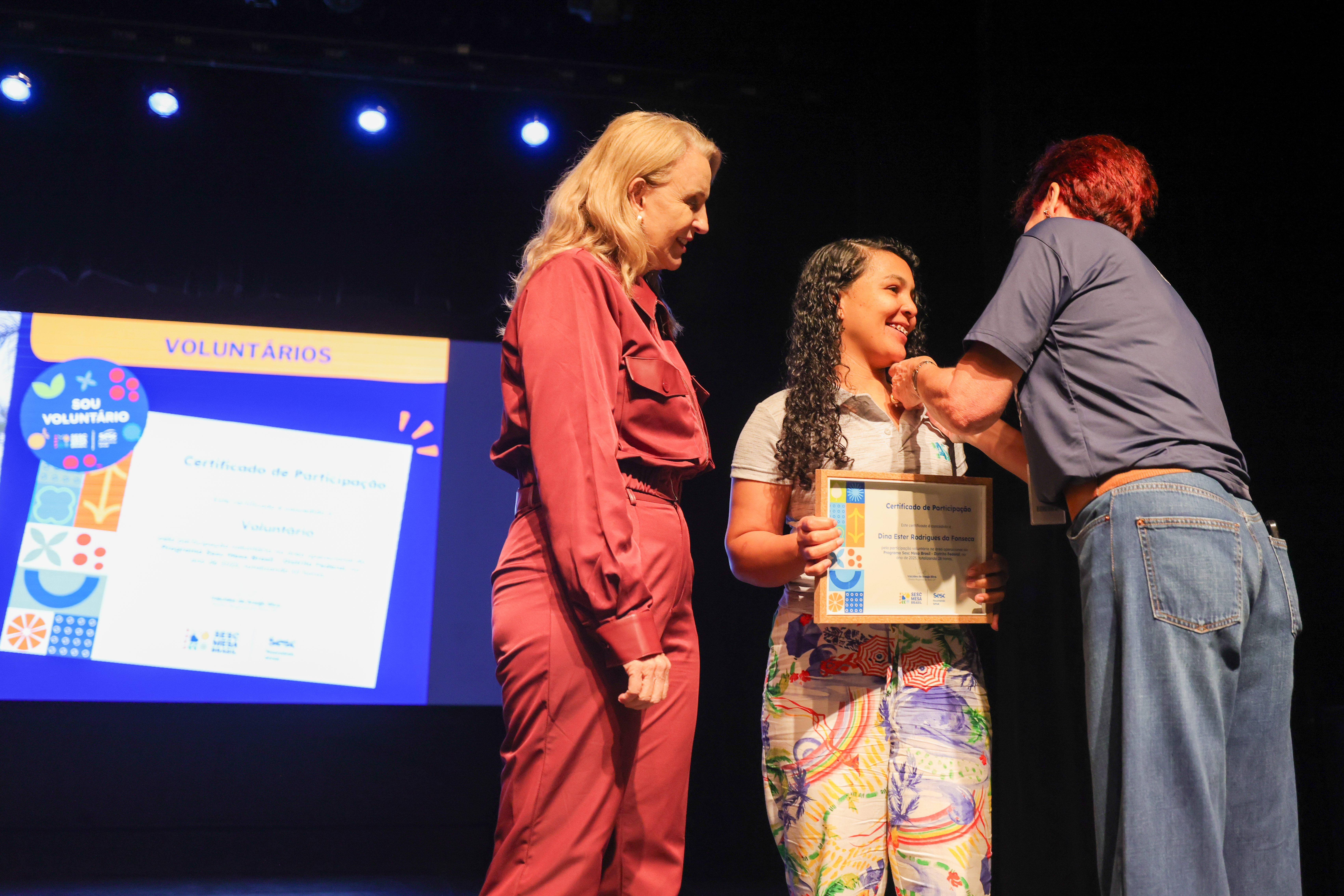 A programação incluiu também uma palestra educativa ministrada por Mª Ana Carolina Cunha, Assistente Social do Sesc-DF, que abordou a temática do cuidado, ressaltando a importância do olhar atento às pessoas ao nosso redor e apresentando reflexões sobre a Política Nacional de Cuidados e seus impactos na proteção social. Também foi reservado um momento especial para homenagear os voluntários que atuaram nas ações de arrecadação de alimentos realizadas em eventos com parceiros do Sesc Mesa Brasil, reconhecendo sua dedicação e contribuição. Outro destaque foi a apresentação do programa “Explorando a Capital”, conduzida pela área de Turismo do Sesc. A iniciativa promove visitas a espaços e monumentos de Brasília, ampliando o acesso ao patrimônio cívico, histórico e cultural da cidade, além de fortalecer o senso de pertencimento e cidadania.
